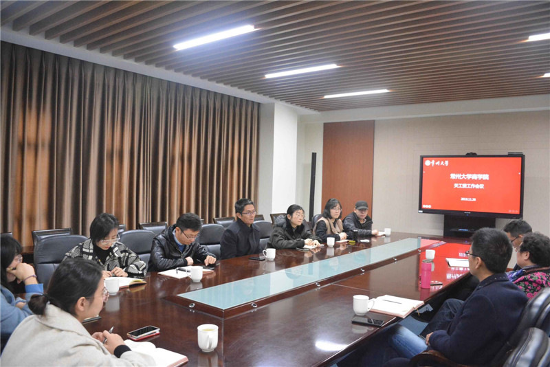 11月28日上午,商学院、经济学院在西太湖第一会议室召开了关工委工作会议,院党委副书记、院关工委副主任委员龙涌澜主持会议,院关工委委员范俊杰、学工办主任刘峰出席了会议,参加本次会议的还有学院各年级辅导员。