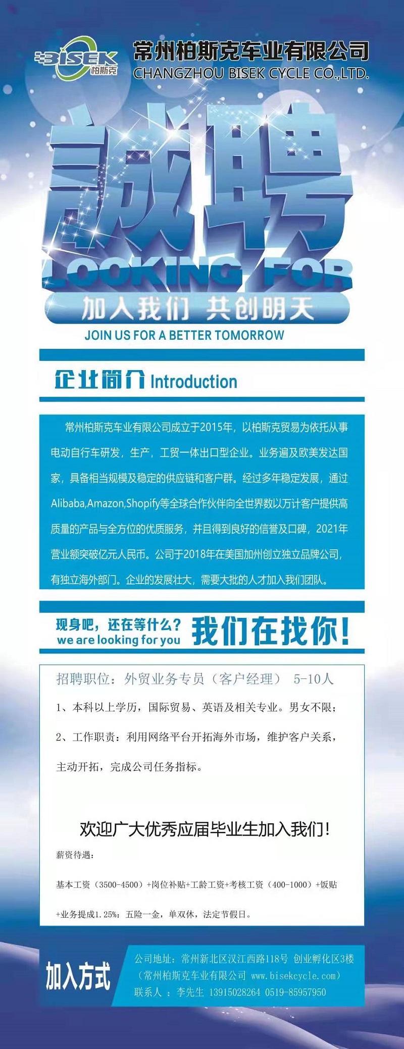 常州柏斯克车业有限公司招聘