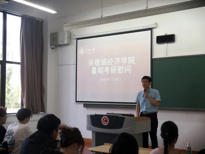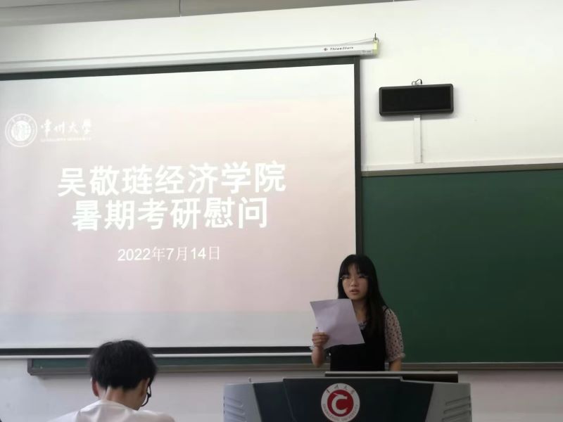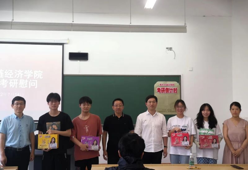 7月14日上午,禁漫天堂 在西太湖校区立德楼119举行暑期考研学子慰问活动。学院党委书记姜鸿、院长姜国刚、副院长任保全、党委副书记王彩芳老师出席活动,19级辅导员顾晗主持慰问活动。