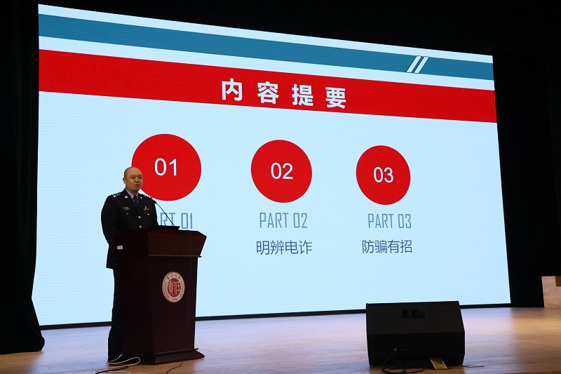 常州市公安刑警支队副支队长谢剑作“浅谈大学校园如何防范电信网络诈骗”主题报告