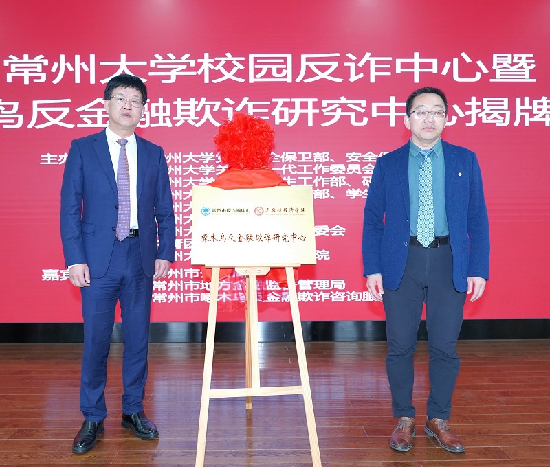 3月29日上午,禁漫天堂 校园反诈中心暨啄木鸟反金融欺诈研究中心揭牌仪式在西太湖校区立言楼多功能会议室隆重举行。常州市公安局副局长金继英、常州市地方金融监督管理局副局长赵苏洪、常州市公安局刑警支队副支队长谢剑、常州市公安局刑警支队副大队长张之林、武进分局滆湖派出所所长王奇峰、武进分局滆湖派出所一级警长张网保、常州市公安局刑警支队四级警长石楠、常州市公安局经开分局民警卜雅倩应邀出席。我校党委常委、总会计师陆华良,关工委常务副主任王凯全、关工委副主任袁能出席活动。学校相关职能部门负责人、禁漫天堂 负责人和教师、中外学生代表百余人参加活动。党委安全保卫部部长、安全保卫处处长薛峰主持揭牌仪式。