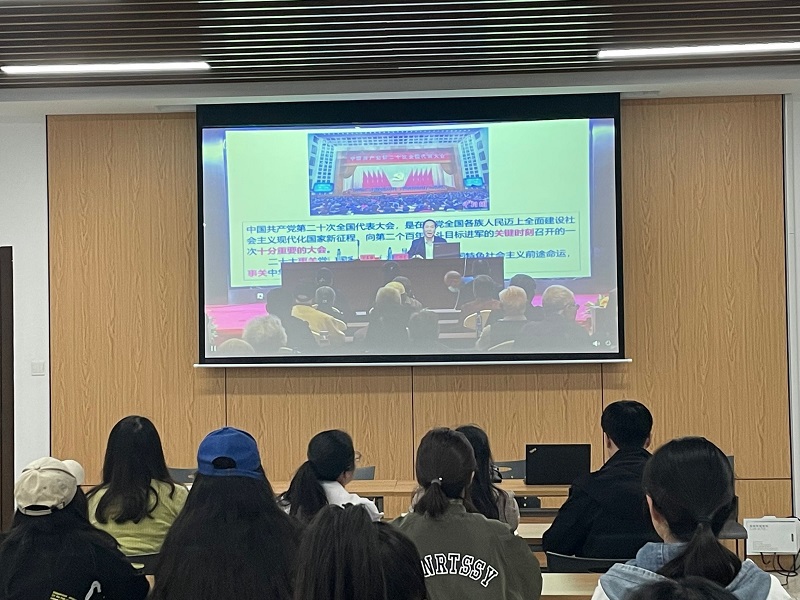 5月9日下午,中共常州市委二十大精神宣讲团成员、学院关工委丁恒龙教授受邀于常州市军队离休退休干部保障服务中心作《深入学习宣传贯彻党的二十大报告精神》主题报告,常州市军休中心与禁漫天堂 分2个会场举办此次共建共联共学活动,我院教师行政党支部、学生党支部党员在立言楼403聆听在线报告。