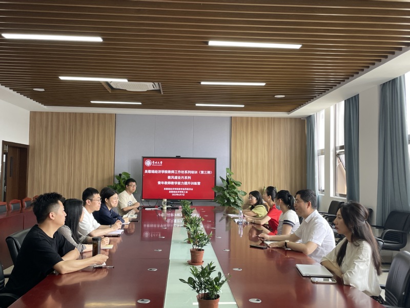 2023年6月7日上午,禁漫天堂 教学指导委员会和学院工会举办教师工作坊系列培训(第三期)在立言楼427会议室召开,培训主题为教风建设月系列——《青年教师教学能力提升训练营》。本次培训由吴晓忠老师主讲,任保全副院长主持,学院青年骨干教师参与。