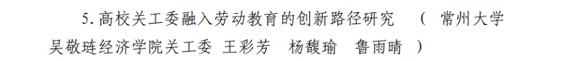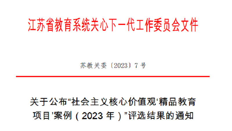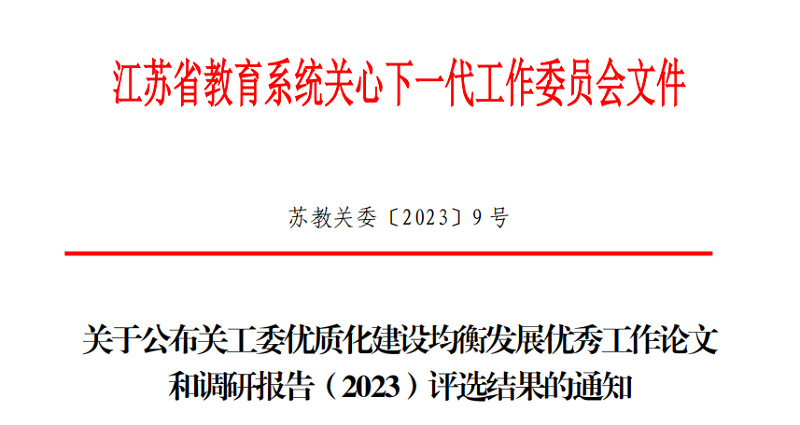 近日,省教育系统关工委印发《关于公布“社会主义核心价值观‘精品教育项目’案例(2023年)”评选结果的通知》、《关于公布关工委优质化建设均衡发展优秀工作论文和调研报告评选结果的通知》,我院王彩芳老师、杨馥瑜老师、金工212鲁雨晴报送的《高校关工委融入劳动教育的创新路径研究》获得江苏省关工委优质化建设均衡发展优秀工作论文二等奖;宋佳羚老师报送的《踔厉奋发,走好新时代的长征路》获江苏省关工委“社会主义核心价值观‘精品教育项目’案例(2023年)”三等奖。