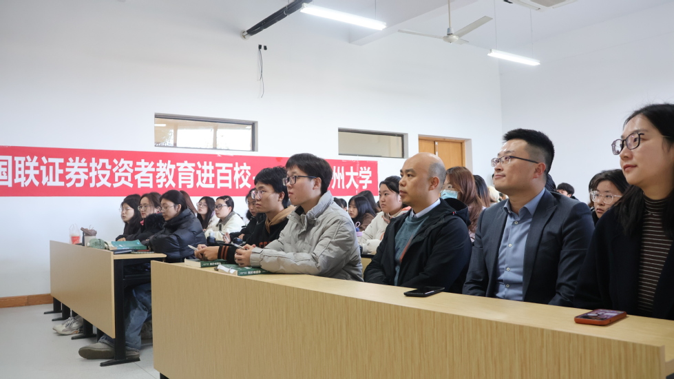 西太湖校区立德楼116开展“企业家讲师进课堂”活动。国联证券曾珊珊、范翔两位企业家讲师应邀授课。国联证券常州分公司总经理梁粤雷、常州衡山路营业部副总经理钱庆红、常州武宜中路营业部总经理张建华应邀出席。学校党委副书记黄海燕出席活动。我院副院长张普、院党委副书记王彩芳和金融学2022级全体同学参加。张普主持活动。