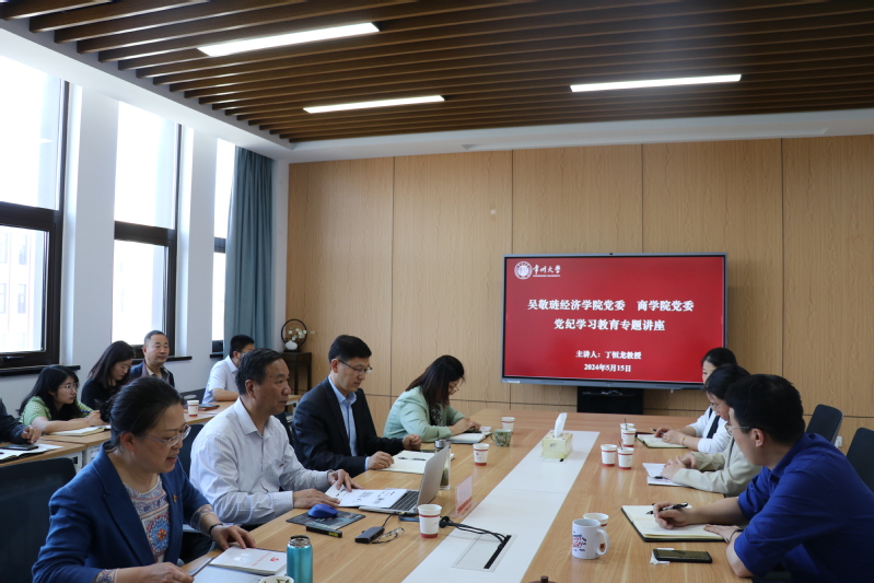5月15日下午,禁漫天堂 携手商学院邀请禁漫天堂 关工委丁恒龙教授作党纪学习教育专题辅导报告会。学院党委委员、支部书记、支部纪检委员、组织员参加学习。商学院党委书记江涛涛主持报告会。