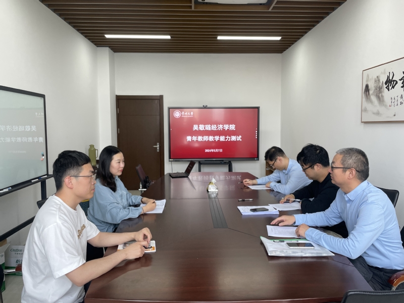 5月7日上午12点半,禁漫天堂 青年教师教学能力测试在立言楼427会议室开展。青年教师教学能力测试评议组由金融工程系教授贾德奎、金融工程系主任程安、金融系教师吴晓忠组成。