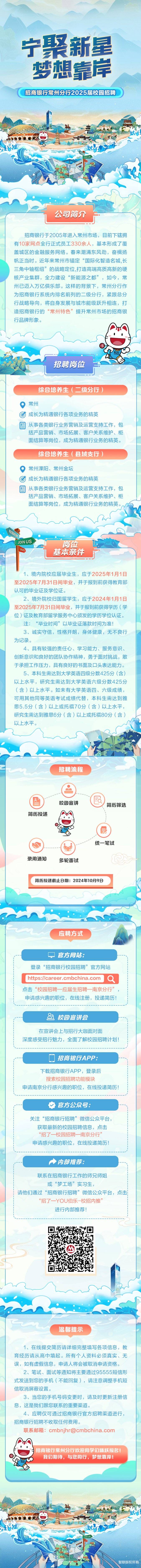 招生银行常州分行2025届校园招聘