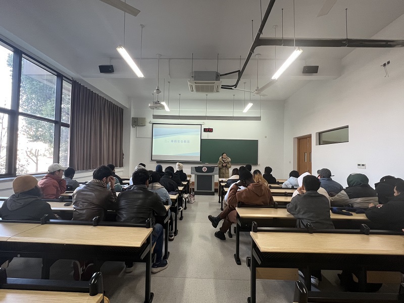 为加强留学生考试诚信意识和寒假期间的安全教育,学院于12月16日下午在立德楼X118教室举行了一场诚信教育和寒假安全教育主题班会,学院全体留学生参加此次班会。