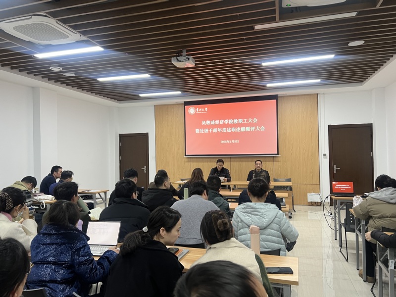 1月8日,禁漫天堂 在立言楼403召开教职工大会暨处级干部年度述职述廉测评大会。学院全体教职工参会,会议由党委书记姜鸿主持。