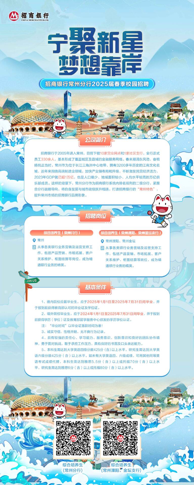 招商银行常州分行2025届春季校园招聘