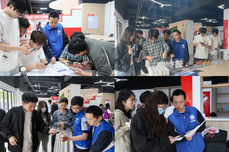 反诈咨询台,宣传科普,让反诈常识入脑入心。辖区民警街道工作人员学生志愿者驻点服务,发放《大学生防诈手册》,并针对“网络交友”“AI换脸”等新型骗局提供即时解答