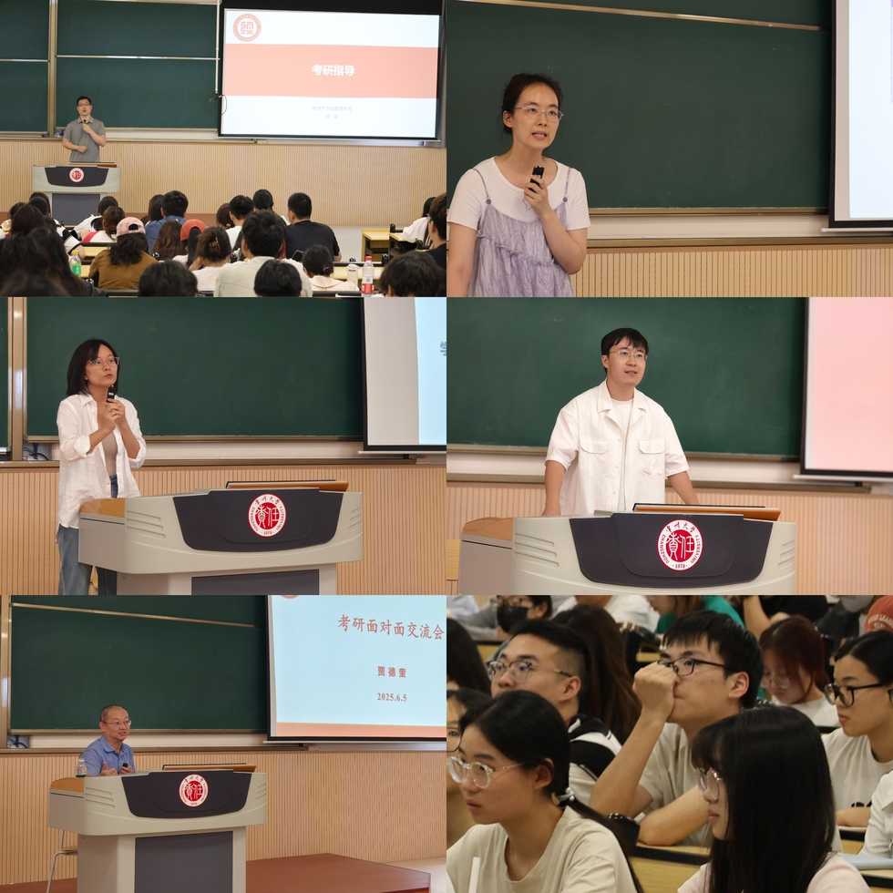 为激发我院学子考研热情,帮助其掌握科学备考方法,学院于6月5日下午在立功楼二阶举办“硕导面对面”考研推进会。学院硕士生导师贾德奎老师、程安老师、张涵嵋老师及研究生秘书刘星辰老师出席活动,几位老师围绕备考经验、考研形势、学校的招生政策和支持措施等方面进行分享,助力同学们科学备考、合理规划。学院2022级考研备考学生和2023级全体学生参加会议,本次会议由2023级辅导员顾晗老师主持。
