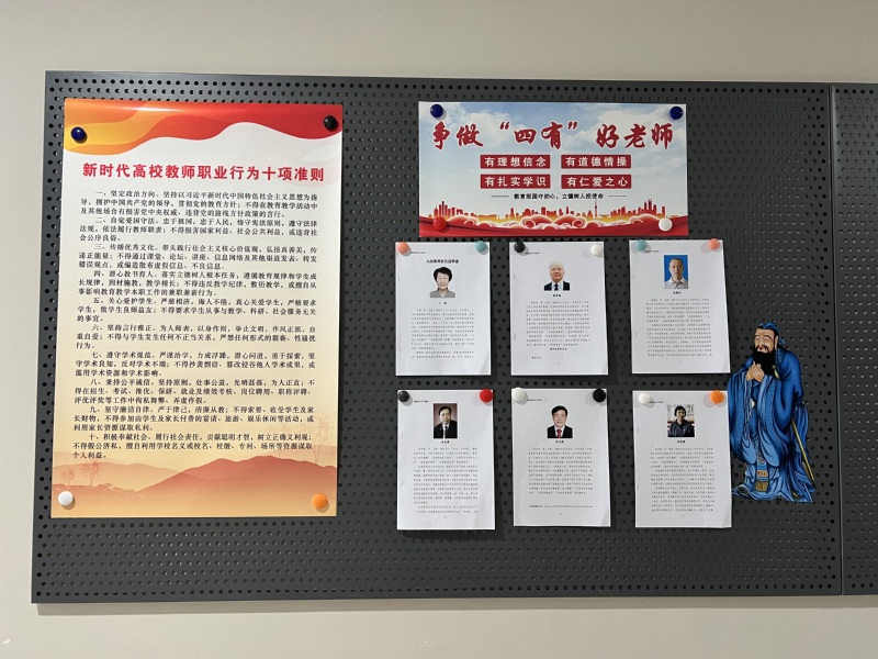 同时,学院充分利用宣传栏等线下阵地,集中展示了一批爱岗敬业、甘于奉献的教师模范风采,生动讲述他们潜心教学、关爱学生的感人故事,在学院内积极营造了见贤思齐、崇尚先进、争当先进的浓厚氛围。此次建设月活动有效引导全体教师自觉践行高尚师德,进一步推动了风清气正育人环境的构建,为学院高质量发展注入了坚实的精神动力。