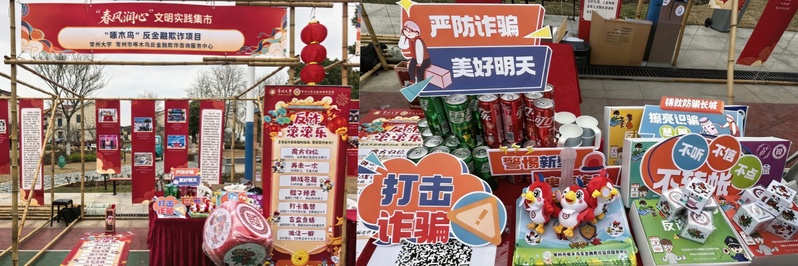 3月4日,全省“学习雷锋好榜样 文明实践我行动”主题活动在常州经开区横山桥镇五一村启动。活动由省精神文明建设办公室、省委社会工作部、省教育厅、省文化和旅游厅、省卫生健康委、团省委、省妇联、省文联、省科协、省残联联合主办,以赓续和传承雷锋精神为引领,推动新时代文明实践志愿服务持续走深走实。应活动主办方邀请,学院团委、“啄木鸟”反金融欺诈社团20余名研究生和本科生参与“春风润心”文明实践集市展示,精心设计了反诈“滚滚乐”系列互动游戏,吸引大量群众参与体验。
