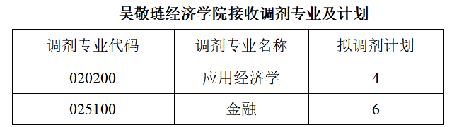 3.调入专业与第一志愿报考专业相同或相近。申请调剂到应用经济学的考生第一志愿需为理论经济学(0201)或应用经济学(0202)。申请调剂到国际商务与金融的考生第一志愿需为理论经济学(0201)、应用经济学(0202)、金融硕士(0251)、应用统计硕士(0252)、税务硕士(0253)、国际商务硕士(0254)、保险硕士(0255)、资产评估硕士(0256)或数字经济硕士(0258)等9个经济学科门类下的专业之一。