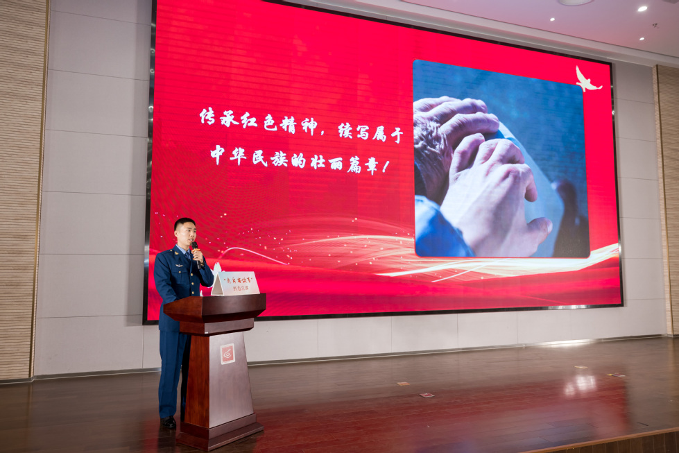 理论教育是传承红色基因的思想基石。活动中,常州市军休保障服务中心“老兵有故事”红色宣讲团成员刘力宏深情讲述了军休干部张克义的动人故事。从战火纷飞的革命年代到和平建设的岁月,张克义老人的事迹如同一部生动的教科书,让在场学生深刻感悟到革命先辈坚定的理想信念与无私的奉献精神。这不仅是一堂生动的党史课,更是老兵精神向青年一代的深情传递。活动现场,我院学生代表怀着崇高敬意向张克义老前辈献上鲜花,鲜花与掌声的簇拥,正是对跨越时光信仰传承的最好致敬。