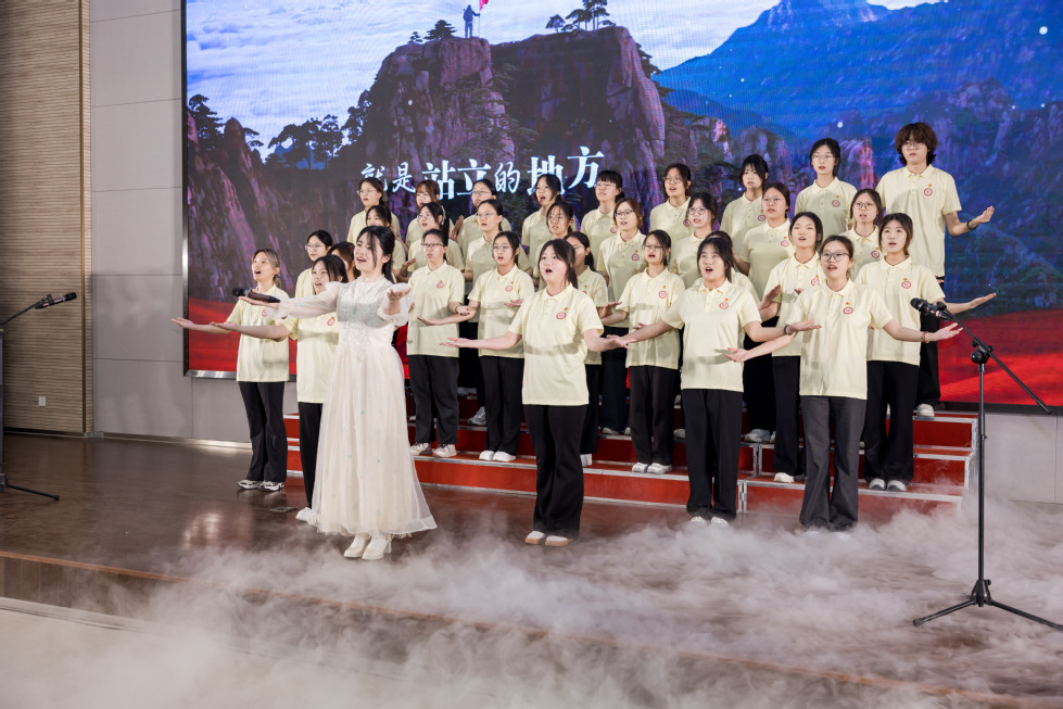 实践是青春向党最响亮的告白。活动以我院学生激昂的合唱《有我》拉开序幕,“请党放心,强国有我”的誓言唱出了新时代青年的使命担当。我院学生代表铿锵有力的红色朗诵《英雄耀龙城丹心照千秋》,将革命英雄的事迹与新时代青年的责任紧密相连,彰显了革命精神赋予新一代的奋进力量‌。这既是我院学子对红色文化的主动演绎,也标志着“老兵有故事”宣讲团精神在学生“红色宣讲员”队伍中得到了新的传承。
