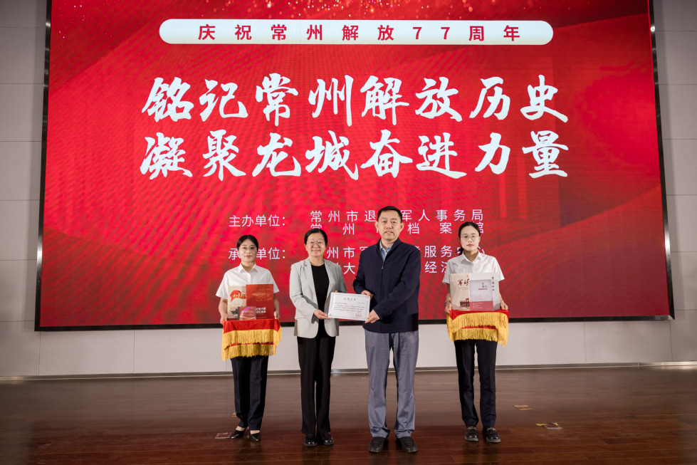 4月20日下午,我院师生赴常州市档案馆新馆参加“铭记常州解放历史 凝聚龙城奋进力量”——“庆祝常州解放77周年”红色宣讲主题活动本次活动由常州市退役军人事务局、常州市档案馆主办,院与常州市军休保障服务中心共同承办。常州市军休保障服务中心军休干部张克义,军休干部黄家伶常州市退役军人事务局党组成员、副局长倪宁常州市档案馆副馆长刘承旺常州市军休保障服务中心党委书记、主任沈春静,副书记、副主任金燕,副主任束茜,纪委副书记张悦,我院党委书记姜鸿,党委副书记许丹丹等出席活动,我院团学干部、入党积极分子和大一新生代表参加本次活动。